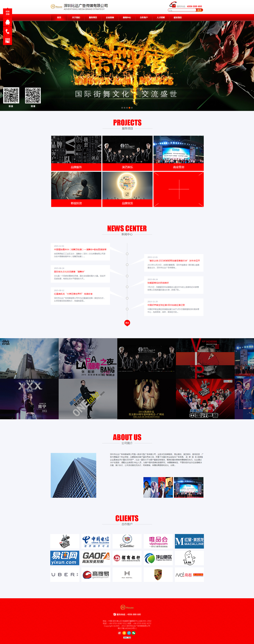 Project Description 深圳市比达广告传媒有限公司是一家多元型广告传媒公司,业务涉及品牌服务、商业策划、演艺娱乐、影视投资、广告代理等多个专业领域,主要服务的客户遍及两岸三地,积累了丰富的专业经验及广告资源。 Official website address 果洛http://www.pdhouse.com I want to share